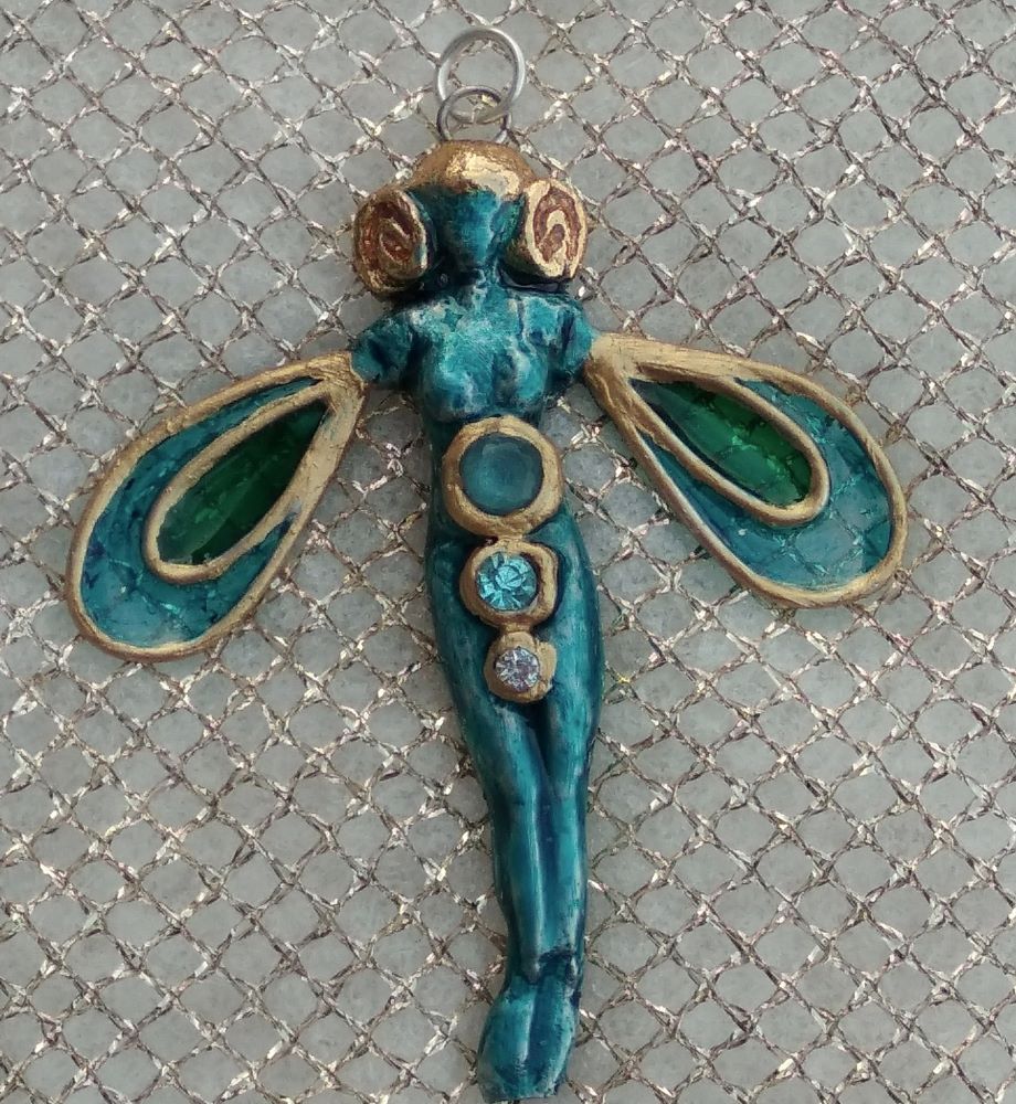 70mm, Emaille, Zirconia, some parts are 24 Kt gold plated, handmade by Rheasilvia, 49 €